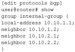 You have configured the IBGP group shown in the exhibit. However, committing your configuration fails.