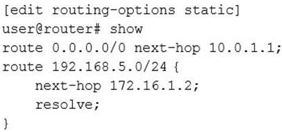 2. The next-hop 172.16.1.2 must be part of an active route in route table inet.0 for route 192.168.5.0/24 to be active.