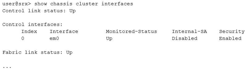 Reference: https://www.juniper.net/documentation/en_US/junos/topics/reference/command-summary/show-chassis-cluster-interfaces.html