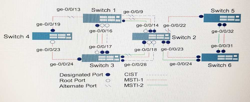 Referring to the exhibit, what is the minimum number of MSTP regions where the topology would be implemented?