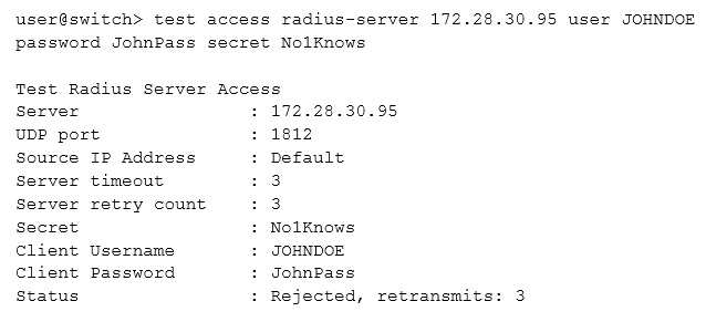 All of the clients attached to your EX4300 report that authentication to the network is abnormally slow. While troubleshooting, you individually test the RADIUS servers used for authentication and receive the information shown in the exhibit.