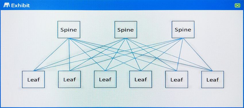A customer has a 3-stage Clos architecture with three spine devices as shown in the exhibit.