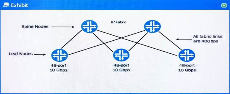 Referring to the exhibit, which hardware change would be made to the IP Fabric to ensure an exact 4:1 oversubscription ratio?