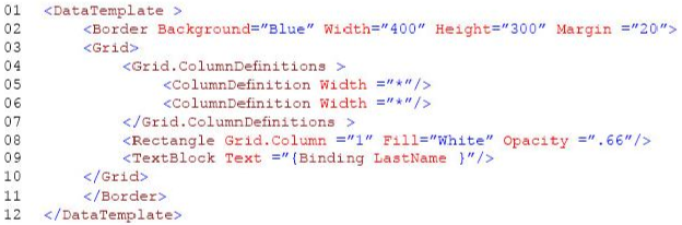 4. Move the Fill and Opacity attributes and value from the RECTANGLE element at line 08 to the GRID element at line 03. Then, Remove the RECTANGLE element.