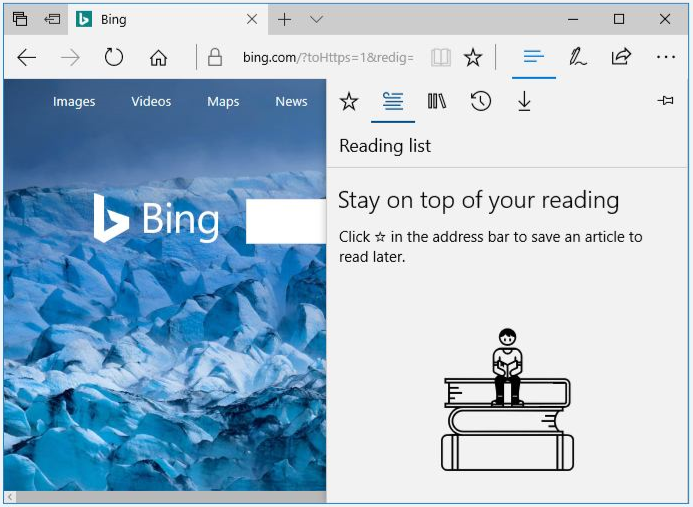 Here is an example of the Microsoft Edge app using SplitView to show its Hub.