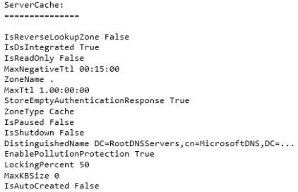Scenario: The DNS servers must be prevented from overwriting the existing DNS entries that have been stored in cache.Cache locking is configured as a percent value. For example, if the cache locking value is set to 50, then the DNS server will not overwrite a cached entry for half of the duration of the TTL. By default, the cache locking percent value is 100. This means that cached entries will not be overwritten for the entire duration of the TTL. The cache locking value is stored in the CacheLockingPercent registry key. If the registry key is not present, then the DNS server will use the default cache locking value of 100.