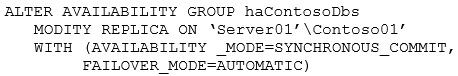 You create an availability group named HaContoso that has replicas named Server01/HA, Server02/HA, and Server03/HA.