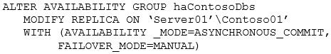 You create an availability group named haContosoDbs. Your primary replica is available at Server01\Contoso01.