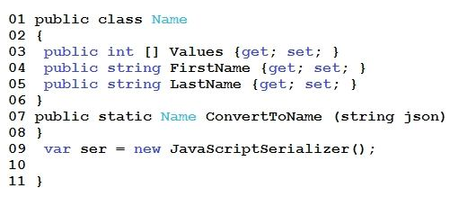 1. Return ser.ConvertToType<Name>(json);