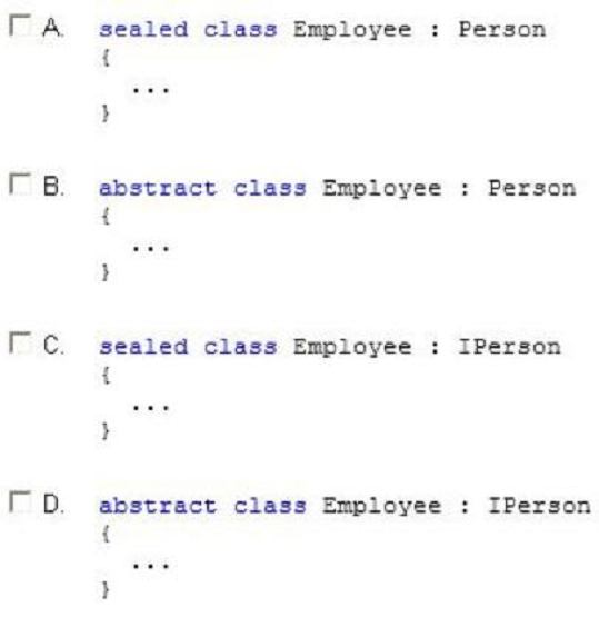 You are developing an application. The application includes classes named Employee and Person and an interface named IPerson.