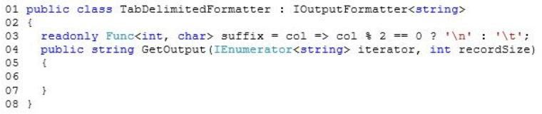 You are developing a code segment that will produce tab-delimited output. All output routines implement the following interface: