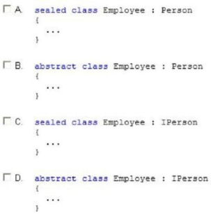 You are developing an application. The application includes classes named Employee and Person and an interface named IPerson.