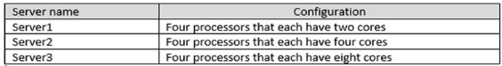 A company named Contoso, Ltd. plans to install Microsoft SQL Server on the physical servers shown in the following table.