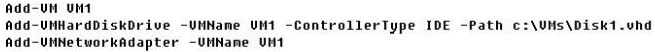 You create a virtual machine named VM1 on Server1 by running the following cmdlets.