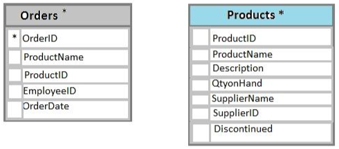 The Orders table needs a foreign key constraint on the productID field, with a reference to the ProductID field in the Products table.
