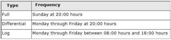 You plan to define a backup strategy for the database. You need to ensure that the following requirements are met: