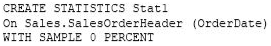 Microsoft recommend against specifying 0 PERCENT or 0 ROWS in a CREATE STATISTICS..WITH SAMPLE statement. When 0 PERCENT or ROWS is specified, the statistics object is created but does not contain statistics data.