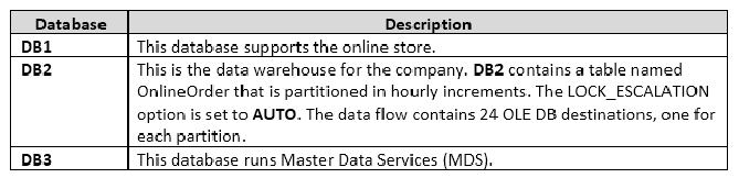 The data warehouse includes the following tables: Dimension.SalesTerritory, Dimension.Customer, Dimension.Date, Fact.Ticket, and Fact.Order. The Dimension.SalesTerritory and Dimension.Customer tables are frequently updated. The Fact.Order table is optimized for weekly reporting, but the company wants to change it to daily. The Fact.Order table is loaded by using an ETL process. Indexes have been added to the table over time, but the presence of these indexes slows data loading.