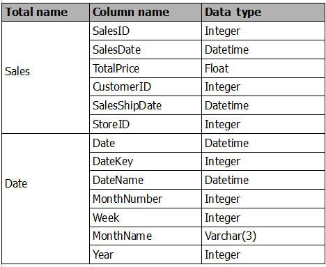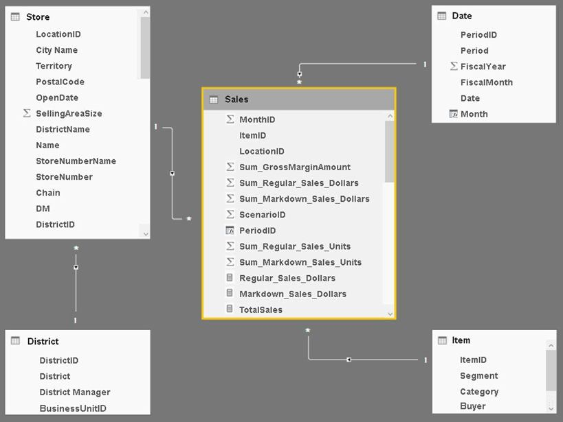 Date[Date] is in the mm/dd/yyyy format. Date[DateKey] is in the ddmmyyyy format. Date[MonthNumber] is in the mm format. Date[MonthName] is in the mmm format.