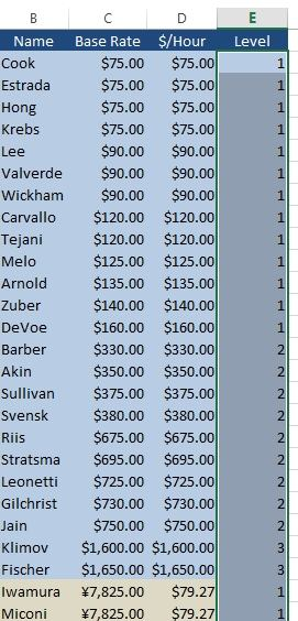 The "Level" of each employee