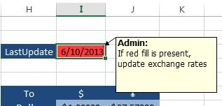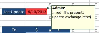 Comment text "If red fill is present, update exchange rates"