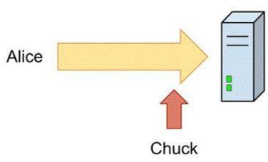 Alice sends her password to the game server in plaintext. Chuck is able to observe her password as shown in the following image: