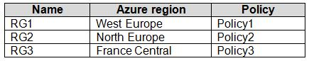 You have an Azure subscription named Subscription1. Subscription1 contains the resource groups in the following table.