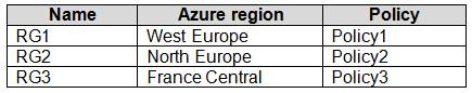 You have an Azure subscription named Subscription1. Subscription1 contains the resource groups in the following table.