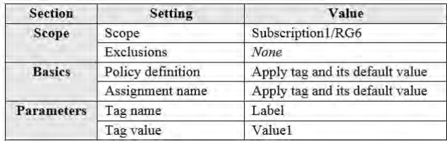 You assign a policy to RG6 as shown in the following table: