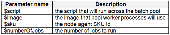 You need to write an Azure CLI script that will create the jobs, tasks, and the pool.