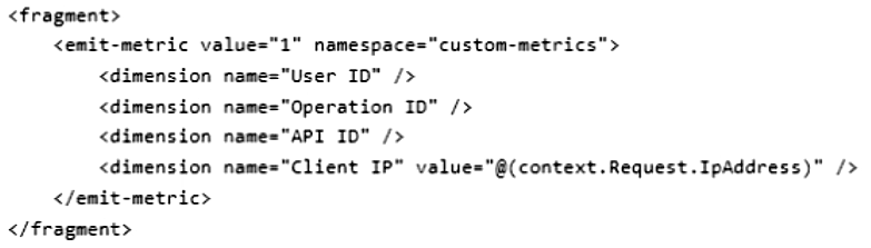 The policy fragment must be reused across various scopes and APIs. The policy fragment must be applied to all APIs and run when a calling system invokes any API. You need to implement the policy fragment.