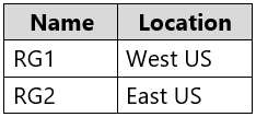 You have an Azure subscription that contains the resource groups shown in the following table.