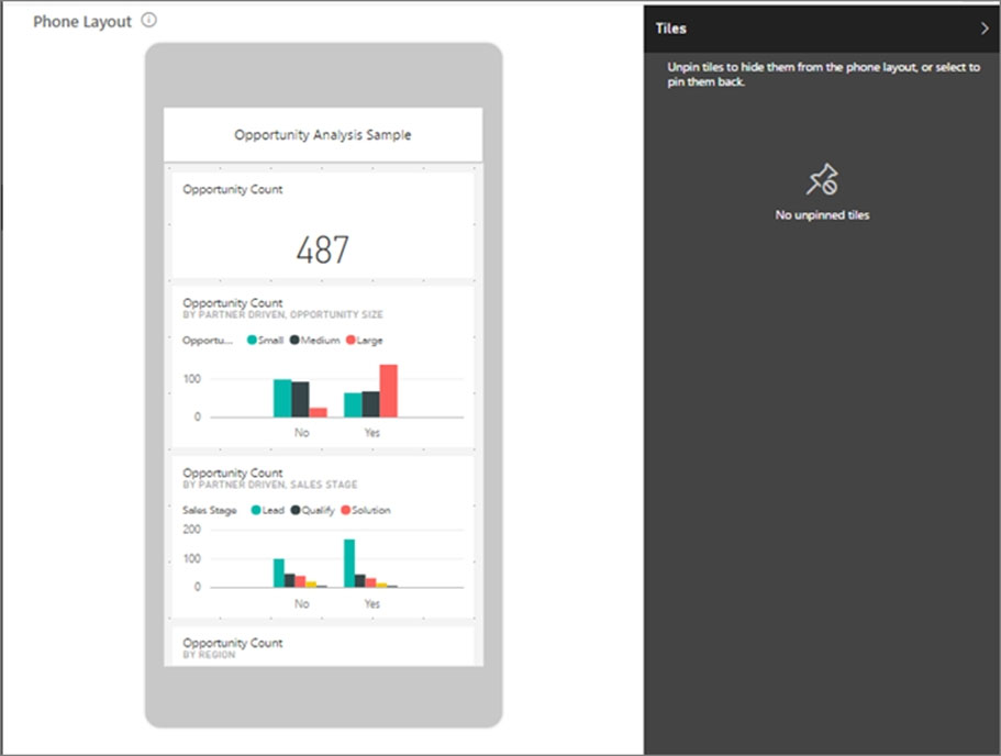 When you view dashboards in portrait mode on a phone, you notice the dashboard tiles are laid out one after another, all the same size. In the Power BI service, you can create a customized view of a dashboard, specifically for portrait mode on phones.
