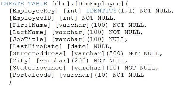 Scenario: Allow Contoso users to use PolyBase in an Azure Synapse Analytics dedicated SQL pool to query the content of the data records that host the Twitter feeds. Data must be protected by using row-level security (RLS). The users must be authenticated by using their own Azure AD credentials. Box 1: CREATE EXTERNAL DATA SOURCE External data sources are used to connect to storage accounts. Box 2: CREATE EXTERNAL FILE FORMAT CREATE EXTERNAL FILE FORMAT creates an external file format object that defines external data stored in Azure Blob Storage or Azure Data Lake Storage. Creating an external file format is a prerequisite for creating an external table. Box 3: CREATE EXTERNAL TABLE AS SELECT When used in conjunction with the CREATE TABLE AS SELECT statement, selecting from an external table imports data into a table within the SQL pool. In addition to the COPY statement, external tables are useful for loading data. Incorrect Answers: CREATE EXTERNAL TABLE The CREATE EXTERNAL TABLE command creates an external table for Synapse SQL to access data stored in Azure Blob Storage or Azure Data Lake Storage. Reference: https://docs.microsoft.com/en-us/azure/synapse-analytics/sql/develop-tables-external-tables
