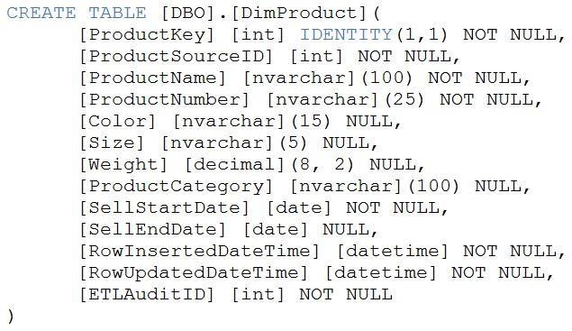 Box 2: CREATE EXTERNAL FILE FORMAT CREATE EXTERNAL FILE FORMAT creates an external file format object that defines external data stored in Azure Blob Storage or Azure Data Lake Storage. Creating an external file format is a prerequisite for creating an external table.