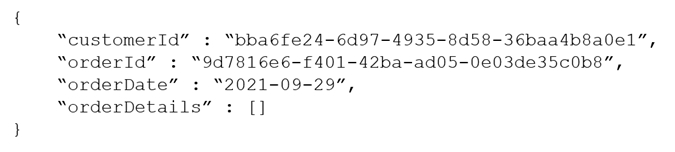 You plan to store order data in an Azure Cosmos DB Core (SQL) API account. The data contains information about orders and their associated items.