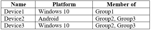 You have three devices enrolled in Microsoft Intune as shown in the following table.