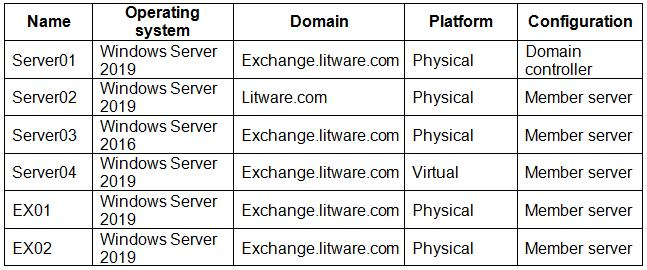 Your network contains an Active Directory forest. The forest contains two domains named litware.com and exchange.litware.com and a Microsoft Exchange Server 2019 organization.