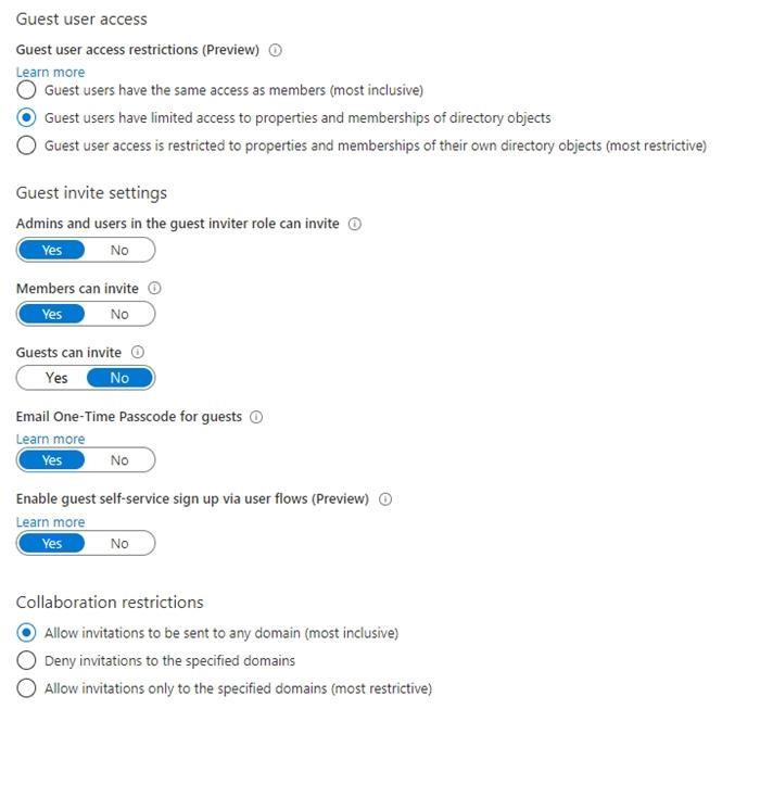 The Guest invite settings for Azure Active Directory (Azure AD) are configured as shown in the exhibit. (Click the Exhibit tab.)