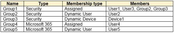You have an Azure Active Directory (Azure AD) tenant that contains the following objects: