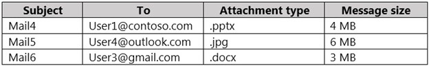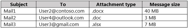 Reference:https://support.microsoft.com/en-gb/office/introduction-to-irm-for-email-messages-bb643d33-4a3f- 4ac7-9770-fd50d95f58dc?ui=en-us&rs=en- gb&ad=gb#FileTypesforIRM https://docs.microsoft.com/en- us/microsoft-365/compliance/ome?view=o365-worldwide https://docs.microsoft.com/en- us/office365/servicedescriptions/exchange-online-service-description/exchange-online-limits#message- limits-1
