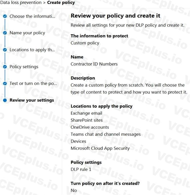 1. From the Microsoft 365 compliance center, create a data loss prevention (DLP) policy.