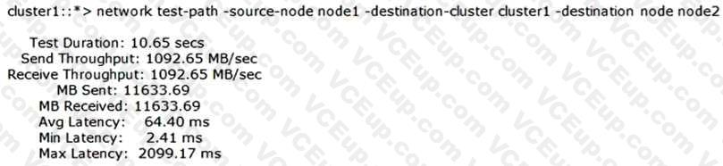 You need to verify that you have a 10 Gb path between two clusters for SnapMirror traffic. Referring to the exhibit, how fast is the network path between the clusters?