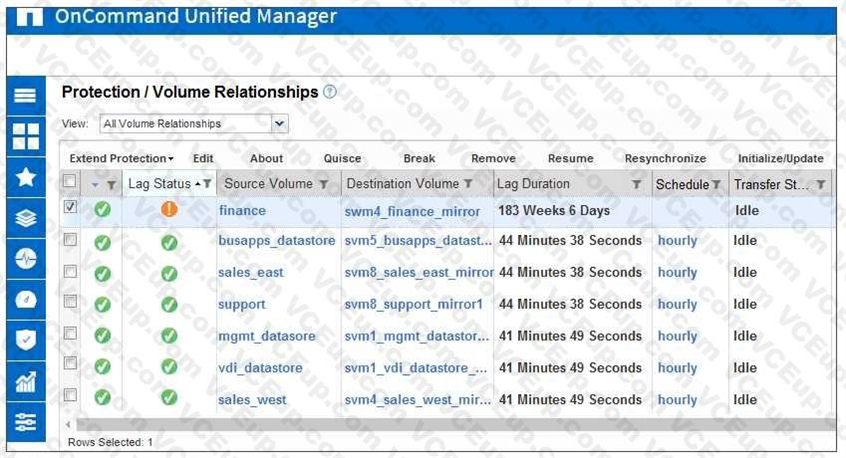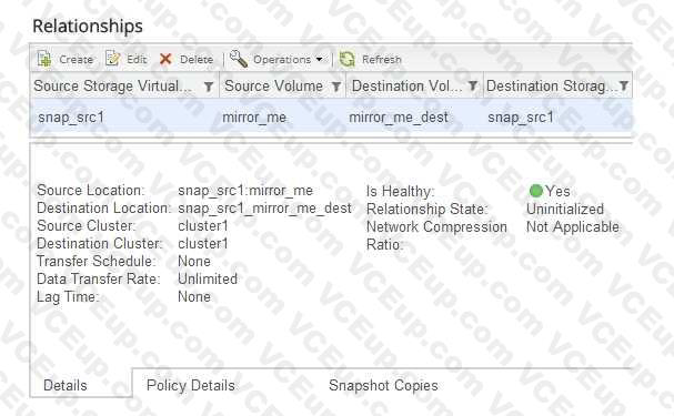 Your customer wants to protect a volume and replicate it to a secondary volume. The customer has tried to configure this relationship using OnCommand System Manager. Upon reviewing this newly configured relationship, you discover that the configuration does not satisfy the customer's stated requirements.