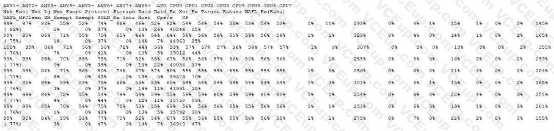 A storage administrator reports that a monitoring toot is reporting that the storage controller reads between 90% to 93% CPU use. You run the sysstat -m command against the node in question.