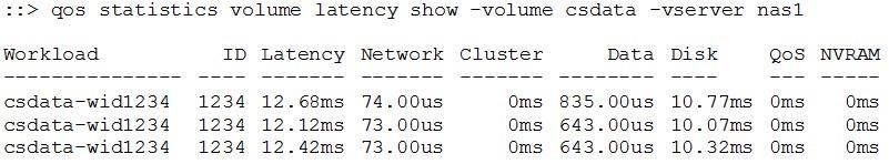 2. Apply a QoS maximum policy to the csdata-wid1234 workload.