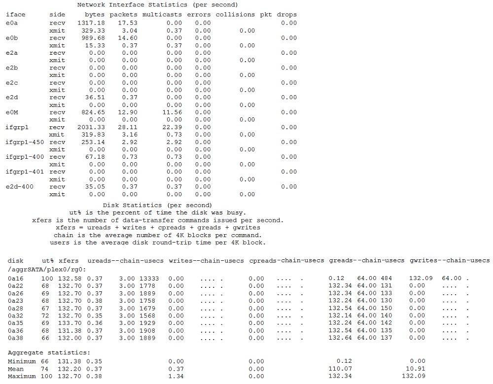Your customer’s disks are showing 100% utilization, but the customer sees minimal user I/O. You collect statistics using the statit command over a 10-second time period as shown in the exhibit.