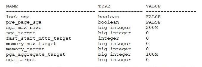 1. setting the PGA_AGGREGATE_TARGET parameter to 200M and the SGA_MAX_SIZE parameter to 400M