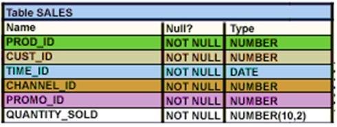 SQL>  CREATE  TABLE  sales(sales_id NUMBER(4)   CONSTRAINT   sales_id_pk   PRIMARY   KEY, item_id  NUMBER(4), quantity NUMBER(10), sales_date   DATE, store_id  NUMBER(4), CONSTRAINT   store_id_fk  FOREIGN  KEY(store_id)   REFERENCES stores(store_id));