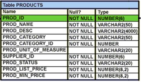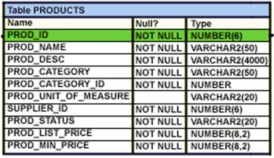 View the Exhibit and examine the structure of the products table.